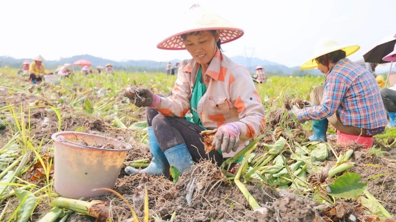 定安翰林670亩红芽芋集中采收 富硒“金疙瘩”跨越山海闯市场