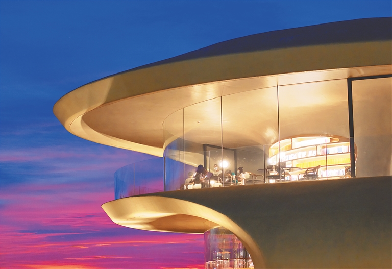 在这里可以举办面对面的读书交流、分享、文学沙龙、现场脱口秀、电影放映等活动,也可以看书、喝咖啡、看景、发呆,从内向外看,室外的浪漫海景触手可及。