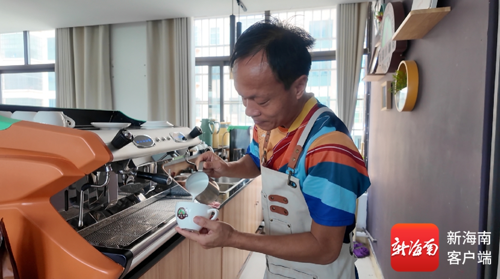 黄秀武正在制作咖啡。记者 郑光平 摄