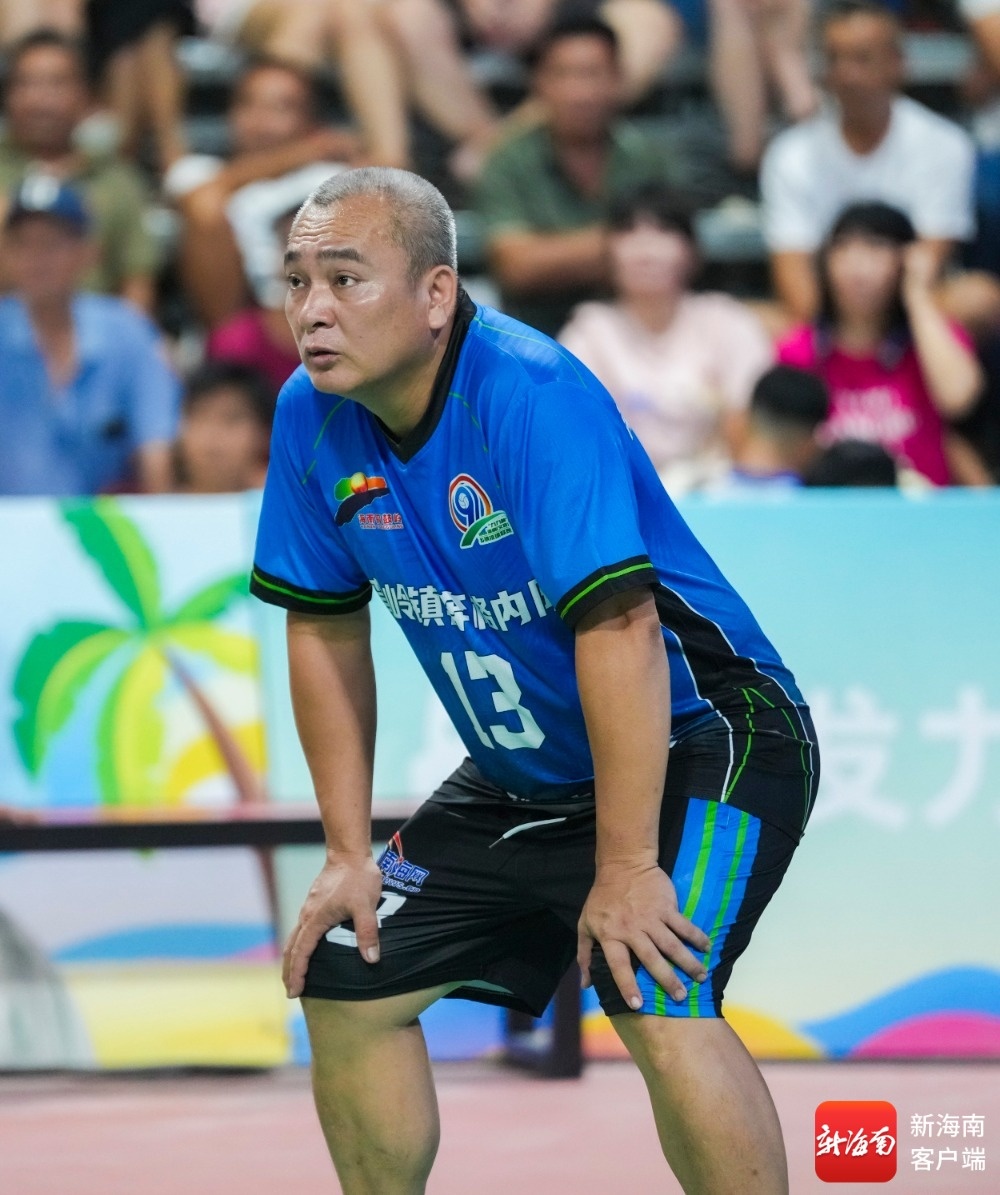 琼中湾岭镇奔格内队45岁老将陈军在比赛中。记者 李昊 摄