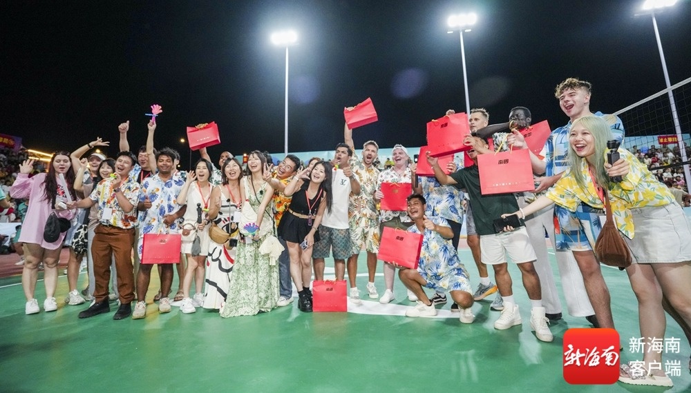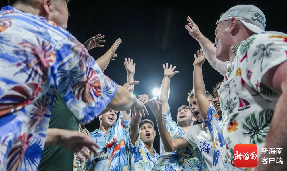 “海南旅游国际推荐官”观球团现场体验海南“村VA”氛围。记者 李昊 摄