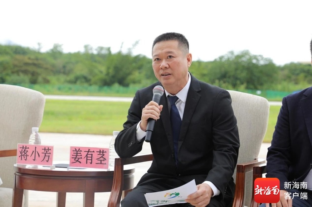 白沙黎族自治县农业产业发展中心主任姜有茎现场回答记者提问。白沙融媒供图