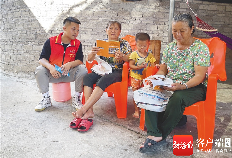 昌江七叉镇乙劳村村务专员刘玉雯(前排左二)在为村民解读民生政策。昌江融媒体中心供图