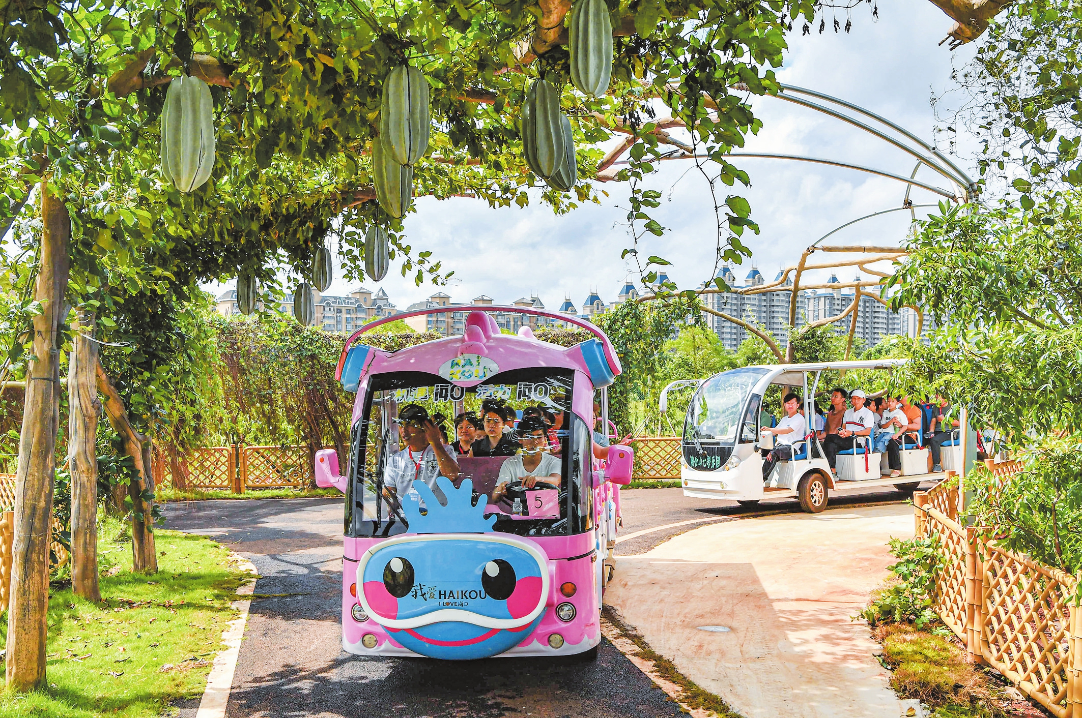 琼山区云龙镇的全球花果之旅生态旅游景区内,市民游客感受生态之美。记者苏弼坤 通讯员龙泉 摄