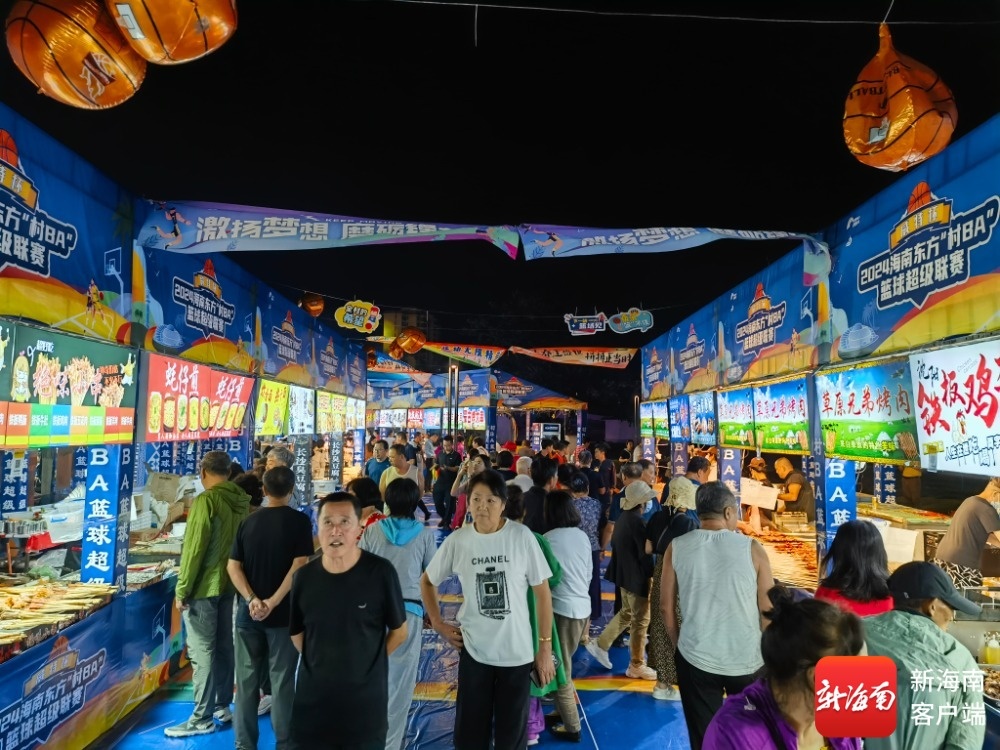“威特杯”2024海南东方“村BA”美食集市人潮涌动,品特色小吃看精彩赛事两不误。记者 李绍远 摄