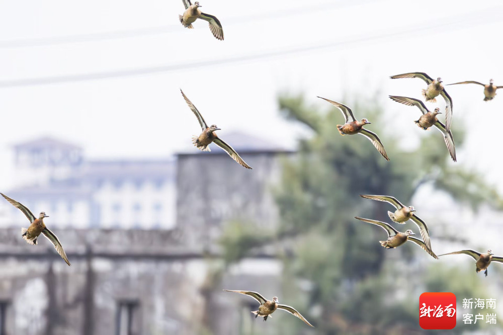 南海网、新海南客户端10月15日消息(记者 谭琦)“门前大桥下游过一群鸭”的儿歌场景,如今有了更生动的“自然注脚”。10月12日,海口观鸟爱好者邹照伟在五源河国家湿地公园发现一群白眉鸭,这是五源河首次观测到成群的迁徙野鸭。