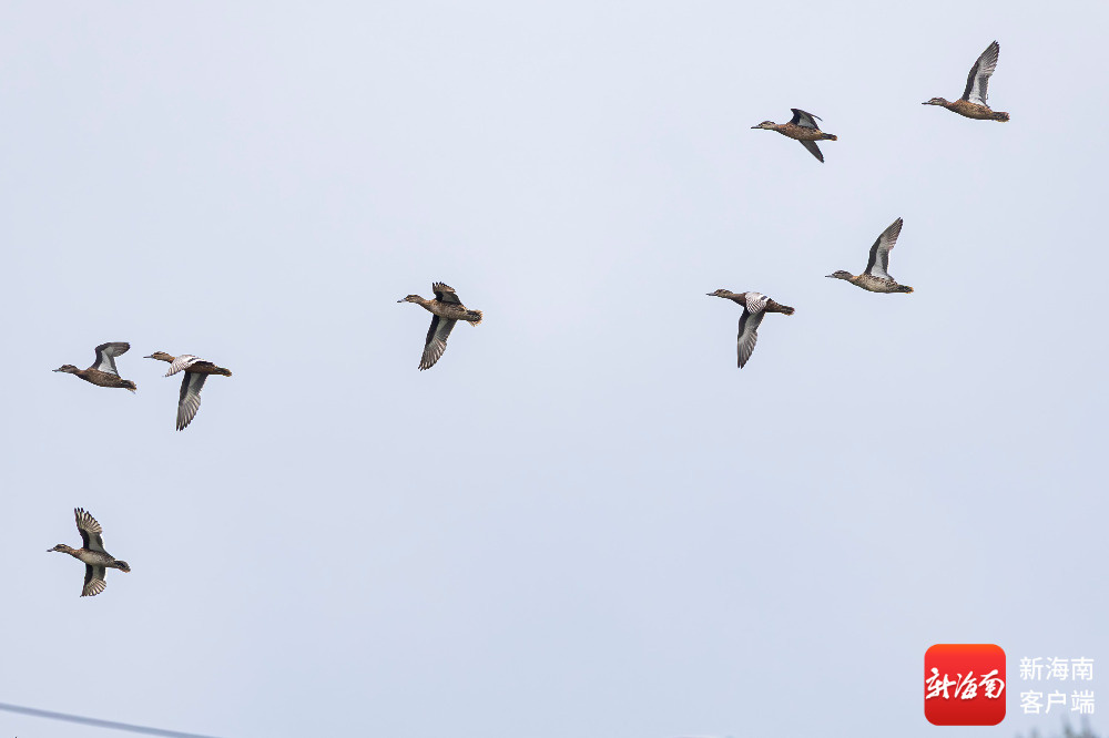 海口五源河首次观测到成群迁徙野鸭。观鸟爱好者邹照伟供图