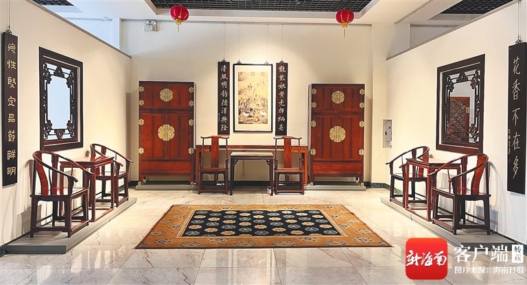 伍炳亮黄花梨艺博馆展示的明式海南黄花梨中堂系列家具。受访者供图