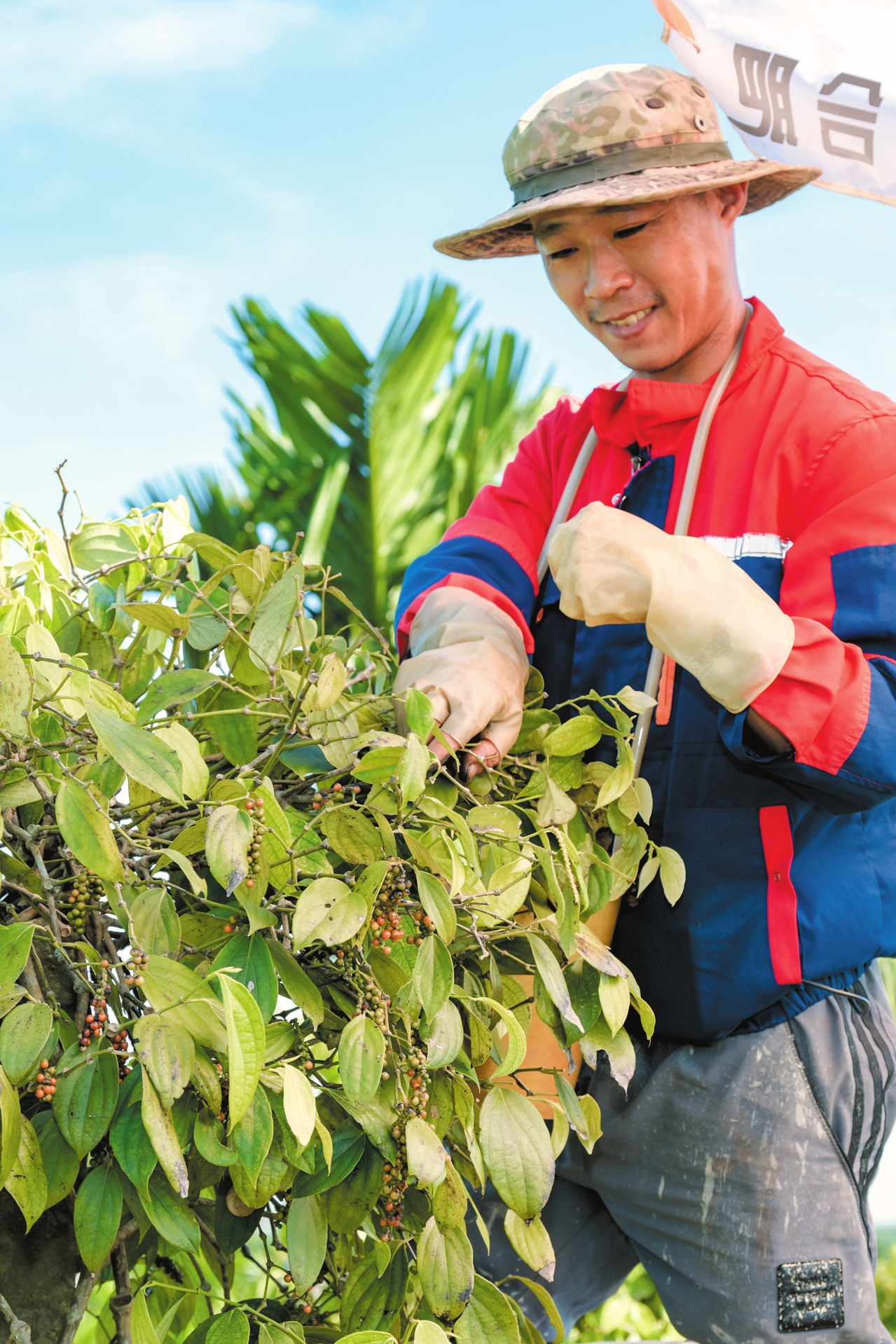 7月15日,琼山区大坡镇胡椒省级现代农业高质量发展产业园示范基地内,农户正在采收胡椒。记者 苏弼坤 摄