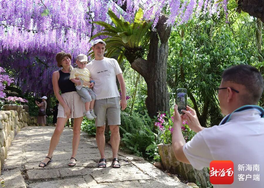 10月13日,俄罗斯游客在三亚亚龙湾热带天堂森林旅游区兰花谷中赏花打卡。图源于新海南客户端