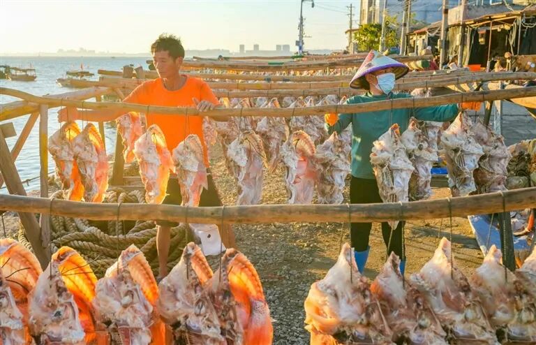 儋州市新州镇新英码头,渔民在晒红鱼。海南日报记者 陈元才 摄