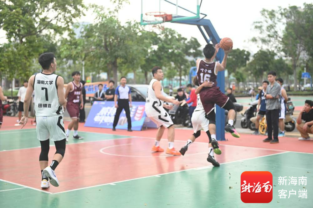 海南东方“村BA”高校预热赛第二站开打,海南大学VS海南师范大学社体联队展开了激烈比拼。