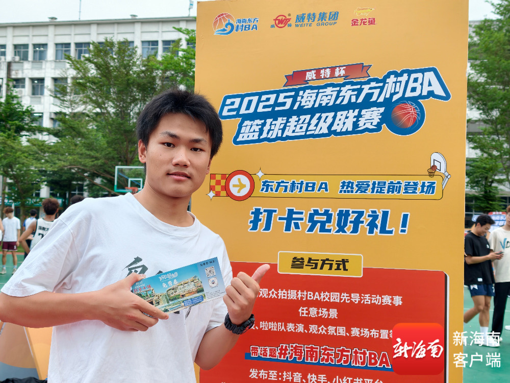 南海网、新海南客户端10月26日消息(记者 韩星)10月26日,“威特杯”2025海南东方“村BA”篮球超级联赛高校预热行走进海南大学,活动现场设置的打卡互动点人气高涨,吸引众多学子驻足参与。海南大学大一新生王泓远在了解活动规则后,成功打卡并领取8张东方鳄鱼小镇门票,他说想带着家乡篮球队伙伴一起去东方村“BA”现场看球赛,沉浸式体验赛事激情与东方特色。