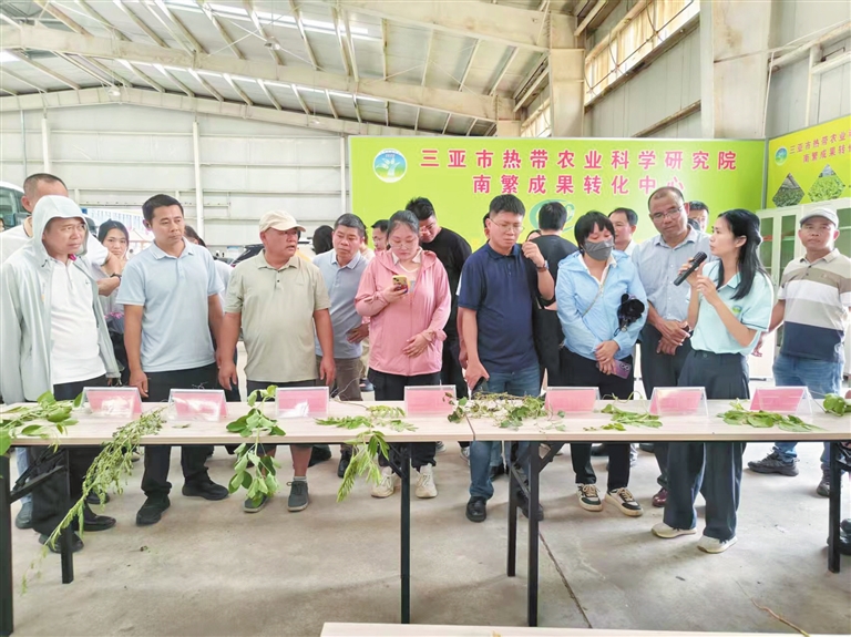 吴小燕介绍,从初步生物量来看,木豆、猪屎豆等品种优势明显。其中,木豆和猪屎豆在种植3个月内都没开花,病虫害也极少,田间特性表现良好。此外,黄花决明被发现不吸引蓟马,绿豆对杂草有显著的抑制作用。这些阶段性的筛选成果,得到了现场海南省农科院、海南大学专家以及各区农户的肯定。
