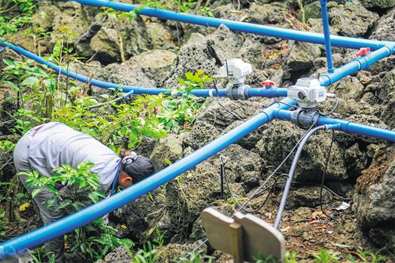 “相对于传统的灌溉施肥,智能水肥一体化设备不但节省人力,还能实现节水节肥。”海口市秀英区永兴镇荔枝协会会长肖植玉介绍道。在海口秀英区永兴镇建中村南岛基地,智能水肥一体化灌溉系统、害虫物理消杀设备、飞防植保作业等高科技耕作场景随处可见。如今这种“科技范儿”的种植模式,已成为海南热带水果产业的新常态。