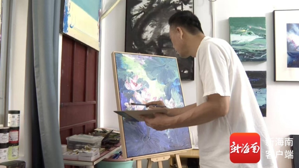 画家正在作画。屯昌融媒体中心供图