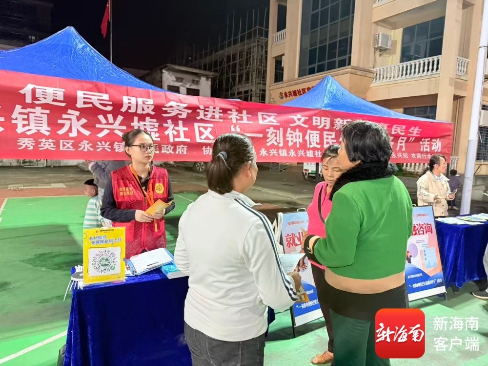 南海网、新海南客户端10月30日消息(记者 韩星)近日,海南就业驿站海口永兴站联合海口市永兴镇人民政府,举办“一刻钟便民生活服务月”线下招聘活动,将精准化就业服务直接送到群众“家门口”,让求职与惠民服务触手可及。
