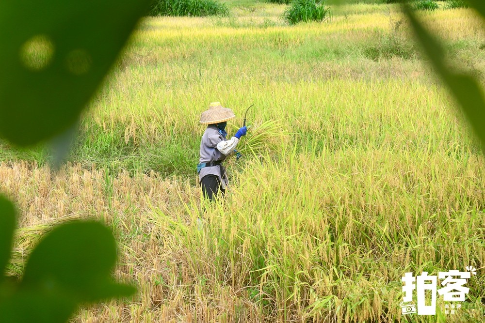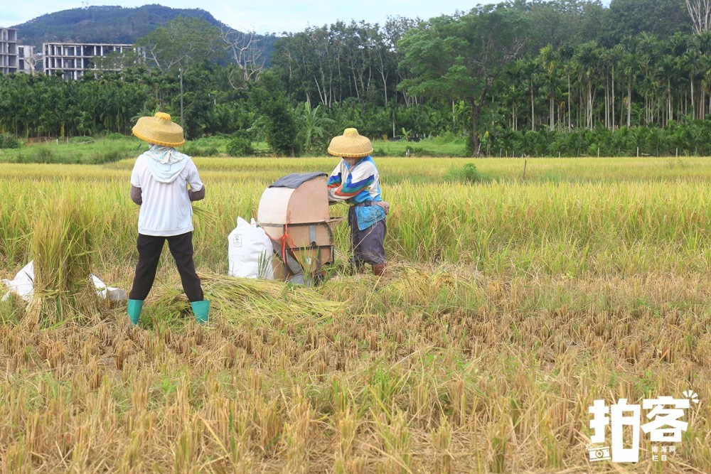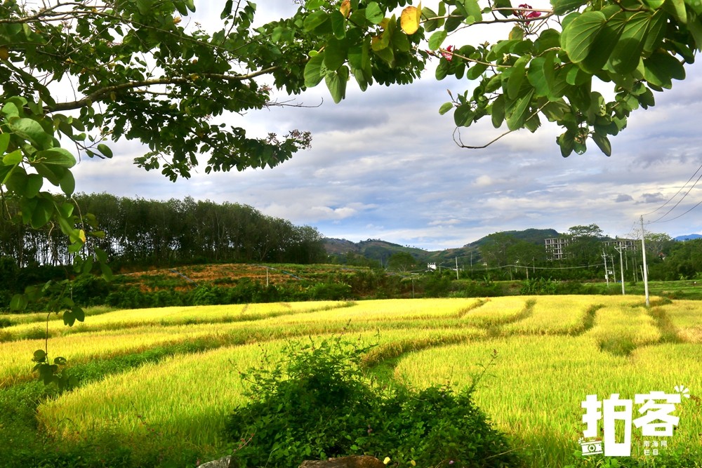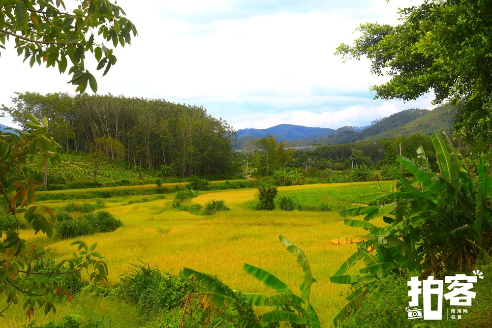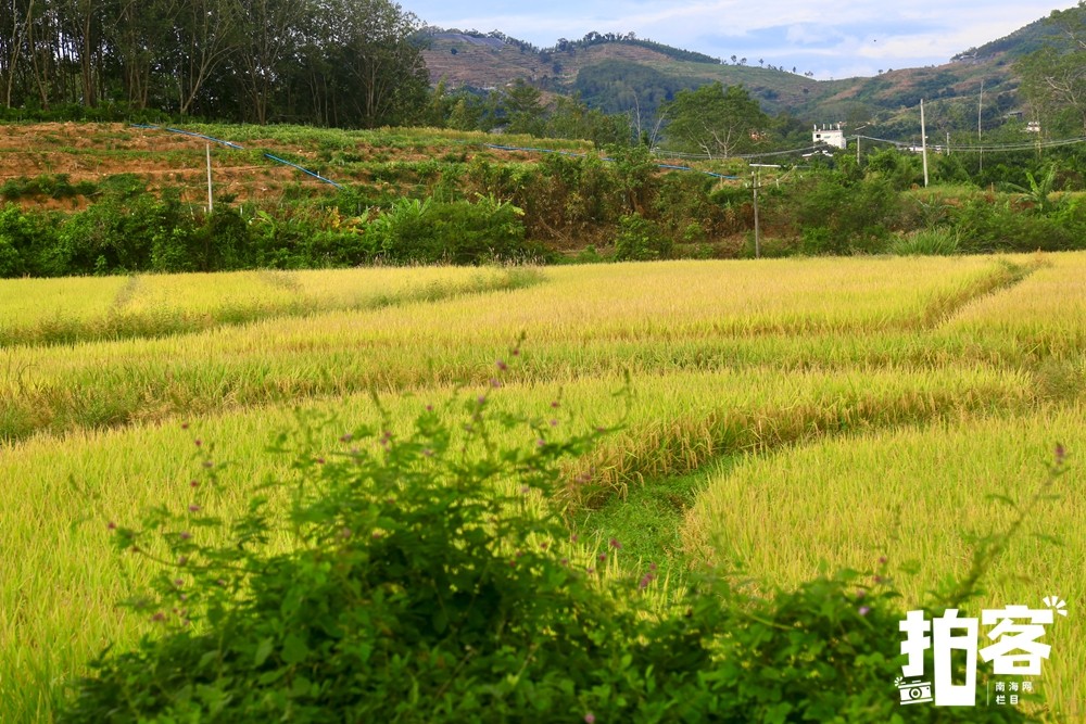 乐东的稻田翻涌着金黄,丰收的季节已悄然漫过田埂。农民们戴着斗笠俯身田间,汗水滴落泥土,悄悄埋下来年的希望。远处山峦叠着云影,将宁静与祥和晕成一幅流动的画。