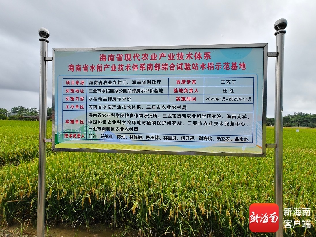 南海网、新海南客户端11月4日消息(记者 利声富)海风吹拂,稻浪翻滚。三亚市水稻国家公园品种展示评价基地,一片片饱满的稻穗随风轻摆,丰收气息扑面而来。11月4日,一场特别的“田间擂台赛”——2025年海南省水稻产业技术体系南部综合试验站水稻观摩会在此举行。通过专家田间鉴评、代表集中观摩与深入技术交流,科学筛选与推介一批适宜海南南部市县种植的优质高产水稻新品种,为粮食稳产增产和农业现代化发展注入强劲科技动力。