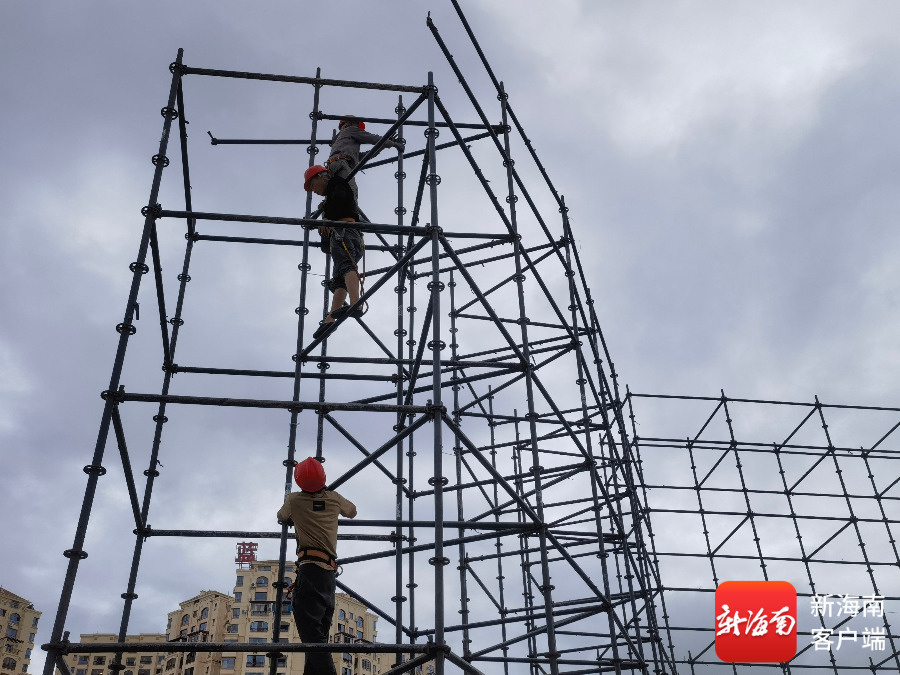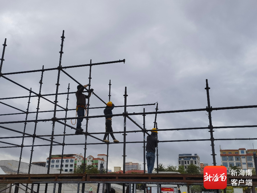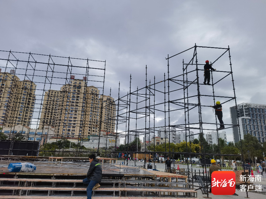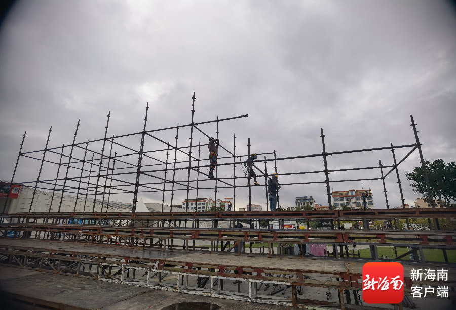 4日下午,在海南东方“村BA”主舞台——东方文化广场施工现场,施工人员井然有序地进行作业,舞台及灯光搭建工作正稳步推进,主舞台的轮廓日渐清晰。“今年的主舞台相较于去年更为宏伟、雅致。尤其是灯光氛围较往年更为浓郁,营造出强烈的视觉冲击力,与开幕式节目《激光秀》相得益彰。”搭建方现场负责人龚伟说。