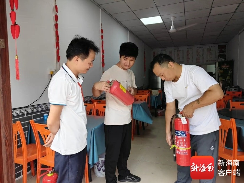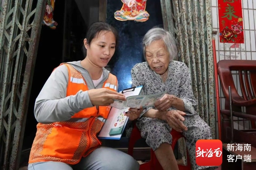 工作人员上门宣传防灾知识。秀英区供图