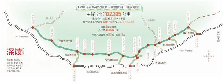 现有和新建的高速公路分别为双向四车道、六车道。据设计单位测算,这一“十车道”协同运行的全新体系,将使三亚段年平均日交通量超过30万辆,东西向快速交通容量从1460万辆/年提升至3650万辆/年。