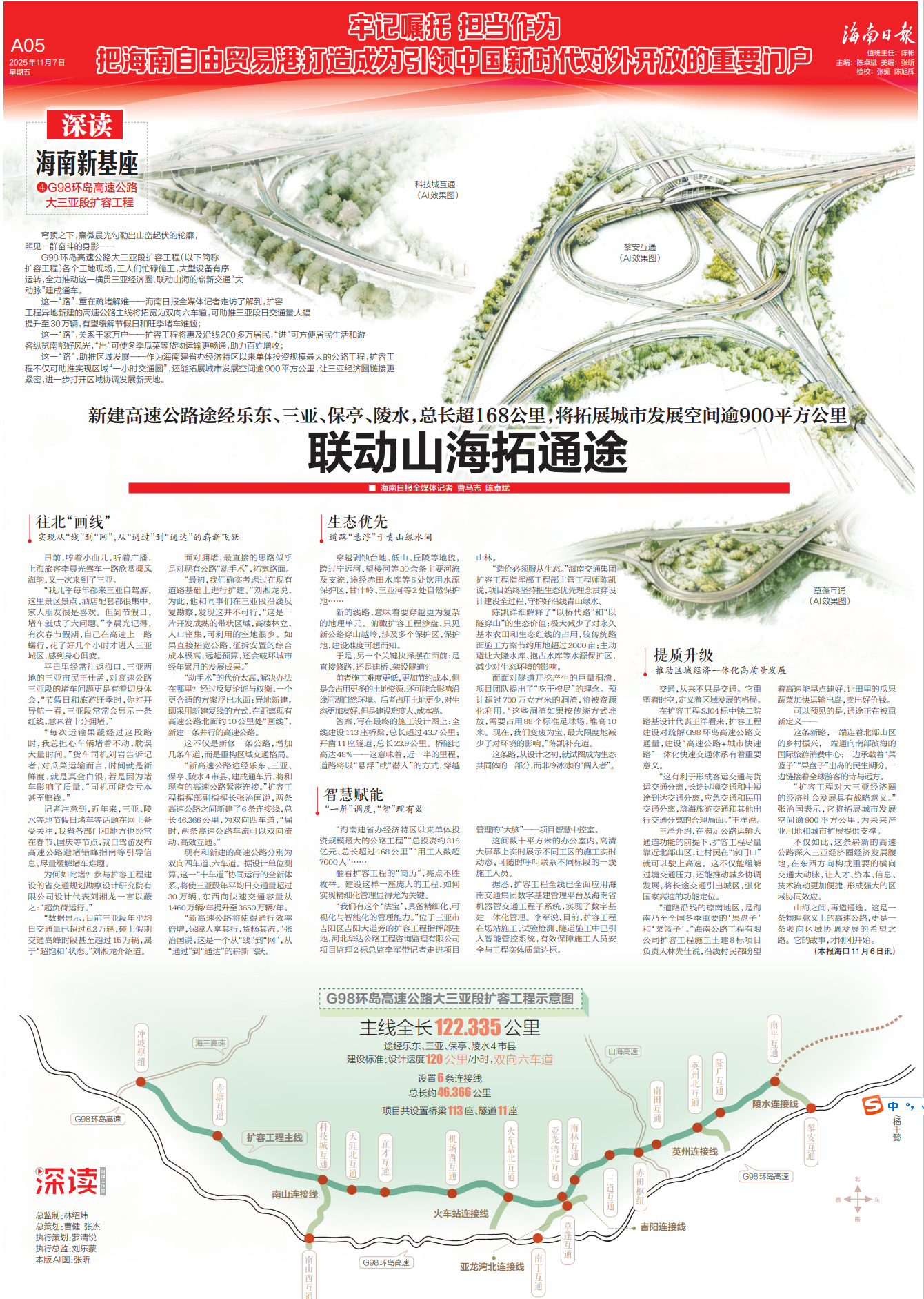 这一“路”,助推区域发展——作为海南建省办经济特区以来单体投资规模最大的公路工程,扩容工程不仅可助推实现区域“一小时交通圈”,还能拓展城市发展空间逾900平方公里,让三亚经济圈链接更紧密,进一步打开区域协调发展新天地。