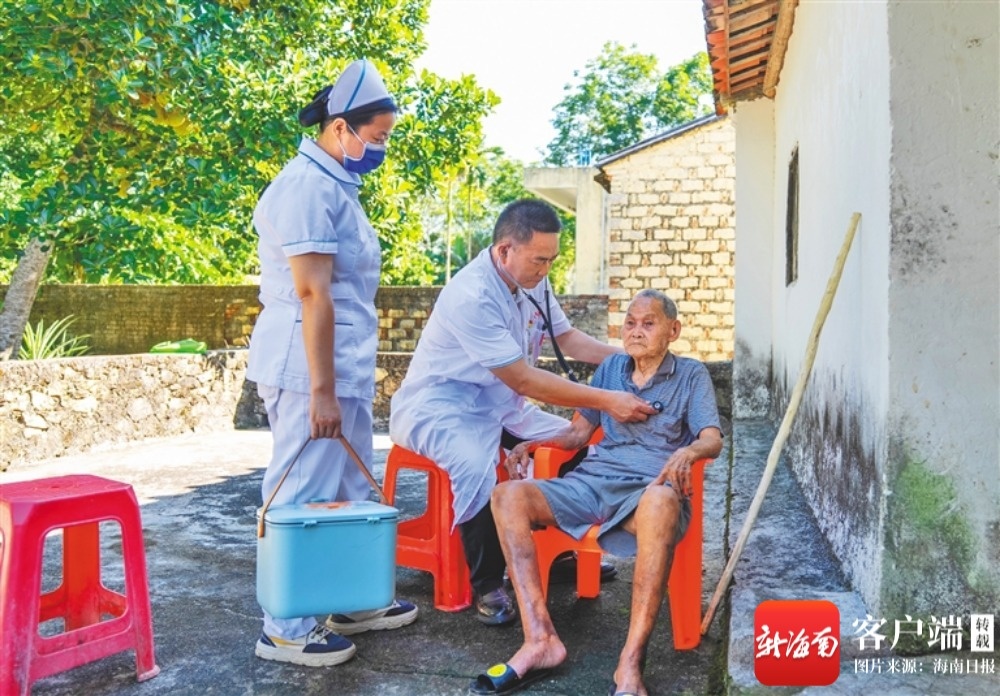 在琼中黎族苗族自治县湾岭镇南久村,医护人员上门为居民提供诊疗服务。海南日报全媒体记者 李天平 摄