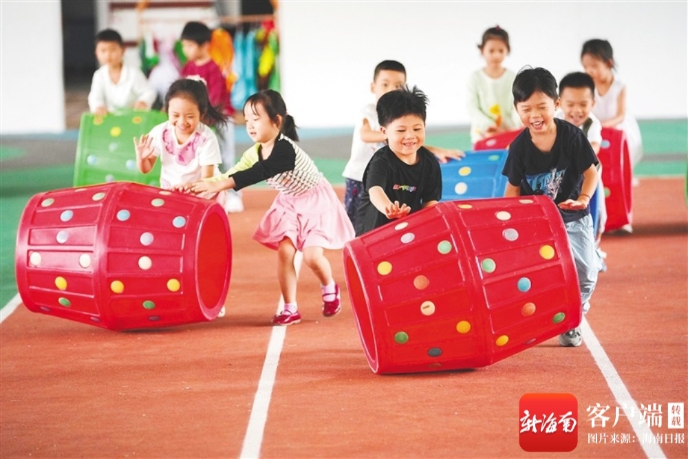 三亚市第一幼儿园,小朋友们在户外操场上开心玩耍。海南日报全媒体记者 王程龙 摄