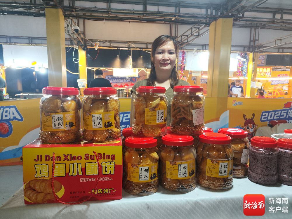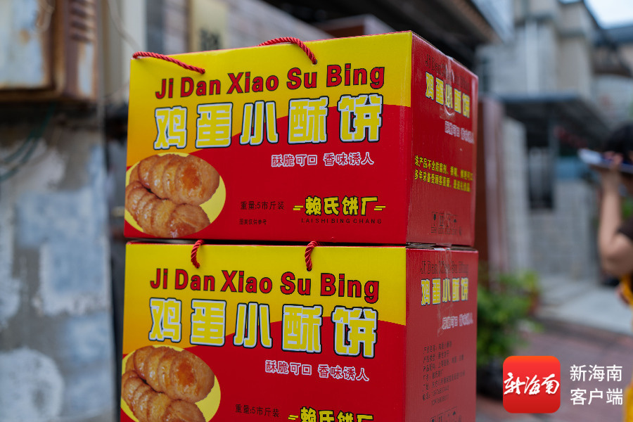 鸡蛋酥饼出炉后,被工人们熟练地分装、封口,打包进印有“赖氏饼厂鸡蛋小酥饼”字样的箱中、瓶罐中,“每天都有订单,上门购买的邻居、乡镇的代理商、其他市县的熟客,不同的场合会有不同的包装。”在这些流向四方的酥饼中,总有一部分会被精心打包,送往一个热闹和年轻的新舞台——海南东方“村BA”赛场边的展销摊位。