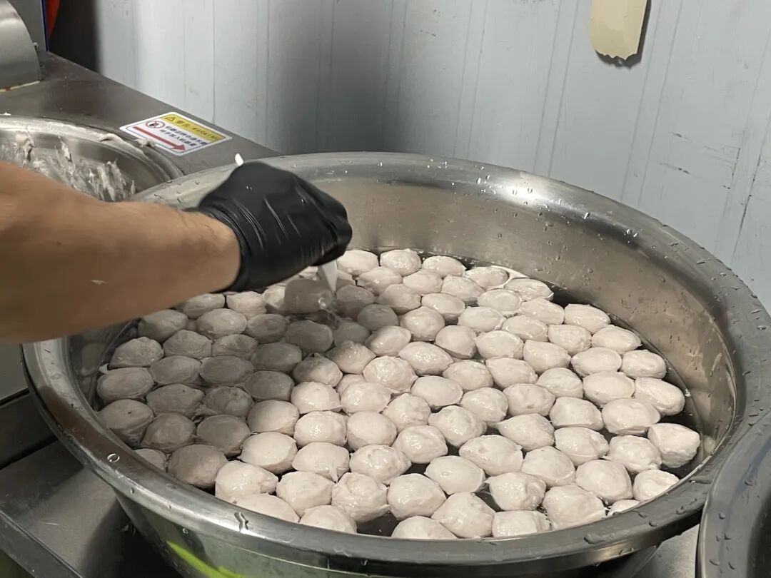 清晨的新盈港码头,渔船陆续靠岸,一箱箱渔获被迅速转运,送往海南临高汇临农业发展有限公司的车间。在那里,富有节奏的“笃、笃”捶打声此起彼伏,新鲜的鱼肉在师傅们手工反复击打下,逐渐变得胶糯、软弹,最终化作一颗颗洁白润泽的鱼丸。