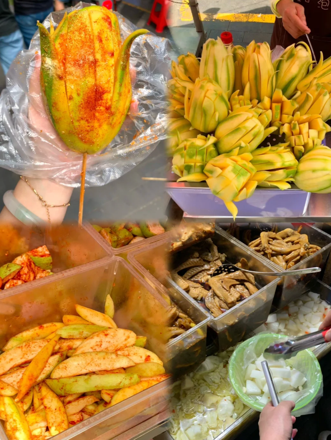 直接生食水果是最基础的操作,给水果加点儿料才能展现海岛特色。削了皮的新鲜水果,蘸上辣椒盐,味觉层次瞬间丰富,令人收获水果变“凉菜”的奇妙体验。