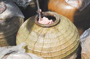 用土法制作的鱼虾发酵制品