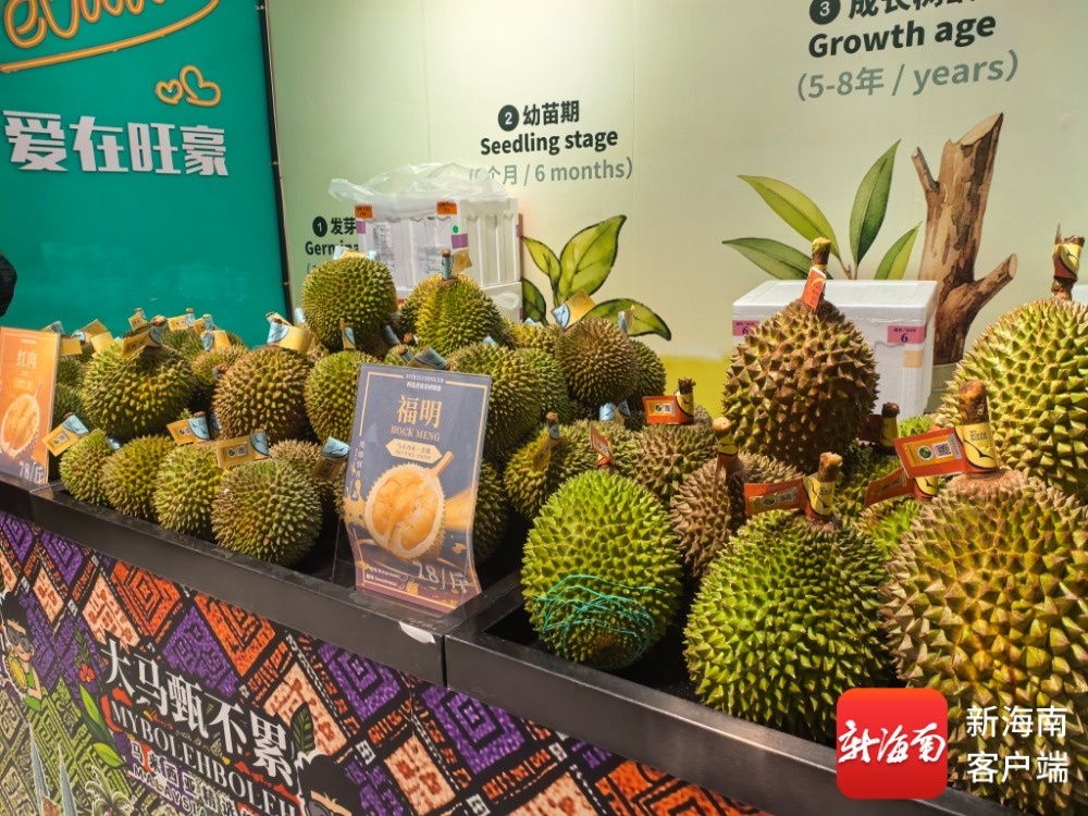马来西亚榴莲上架海口超市。记者 李文韬 摄