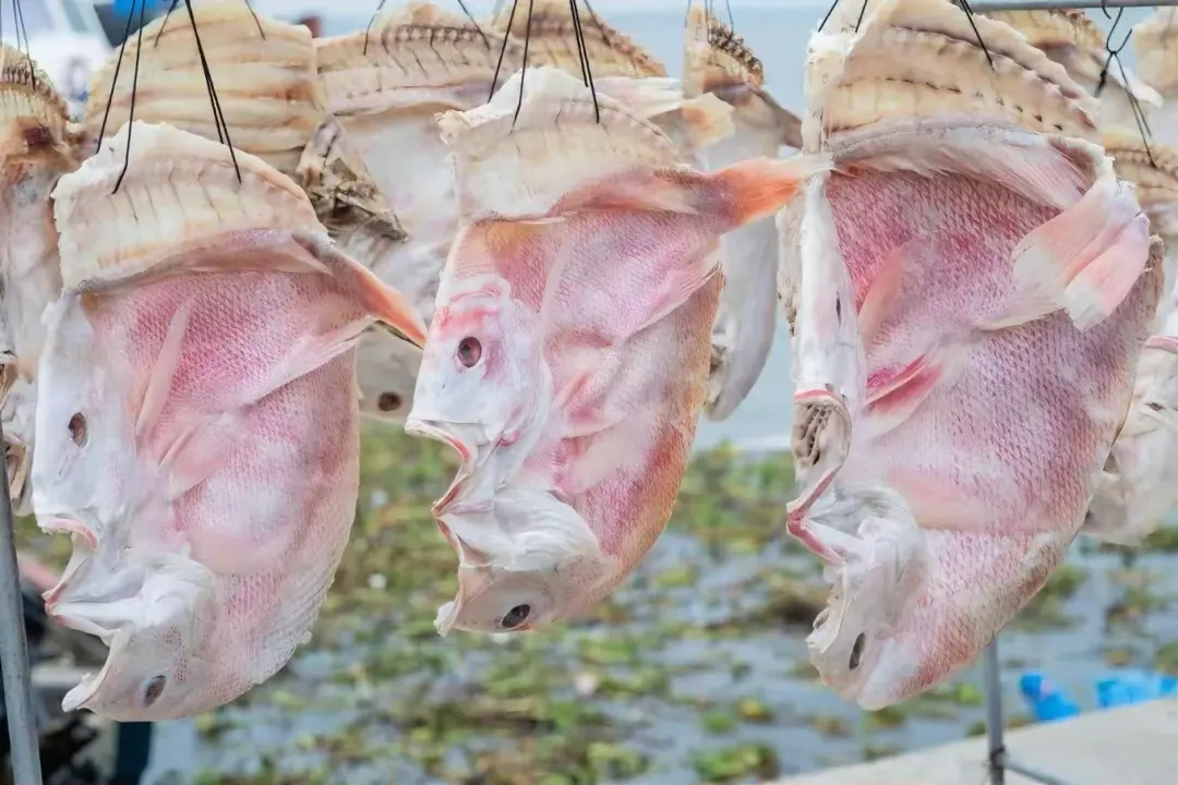 沿途晾晒着许多鱼干