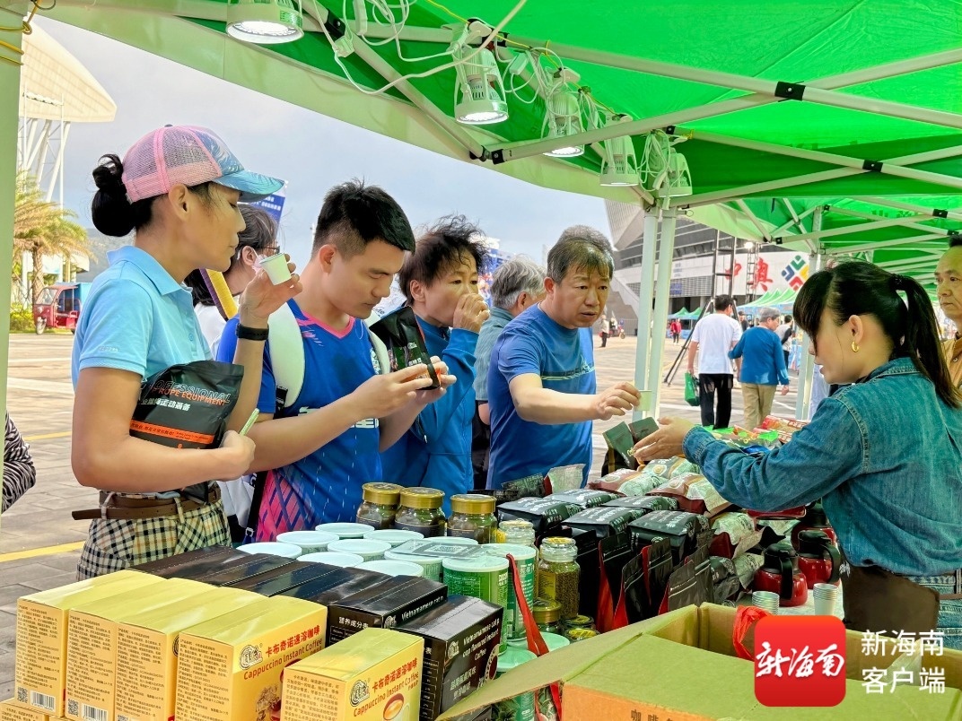 当晚,观众在观赏精彩排球对决的同时步入毗邻赛场的展销区,选购来自全省各地的特色农产品。黑猪肉干、澄迈百香果、陵水海产品、山柚油、胡椒等近百种产品琳琅满目,吸引众多市民游客驻足品尝、选购。现场消费者络绎不绝,不少展位前热闹非凡。