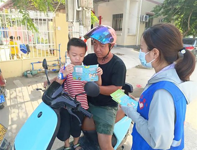 工作人员向群众发放文明手册。张慧膑 摄