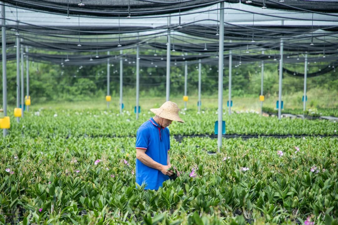 乐妹村民在乐妹兰花产业基地辛勤工作。东方市融媒体中心 摄