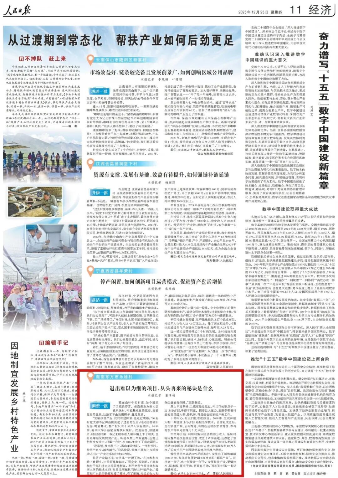 12月25日,人民日报第11版刊发文章《从过渡期到常态化 帮扶产业如何后劲更足(不掉队 赶上来)》,其中提到今年是我国巩固拓展脱贫攻坚成果同乡村振兴有效衔接5年过渡期的最后一年。从过渡期到常态化,帮扶产业如何后劲更足?记者带着问题来到海南东方市乐妹村,探访帮扶产业发展情况。版面图及全文如下: