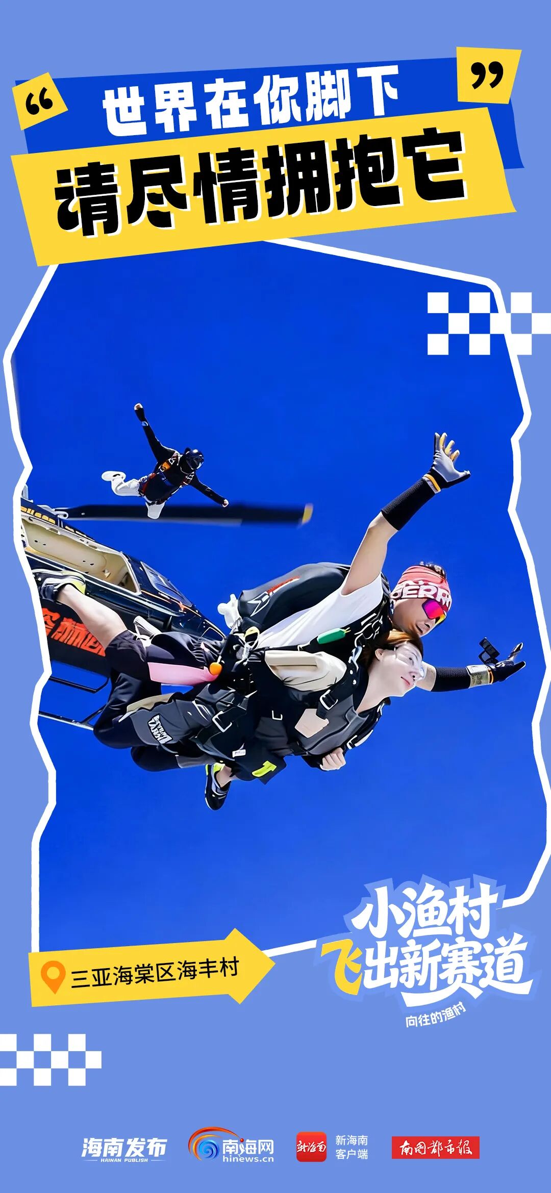 游客在塔赫跳伞基地体验跳伞运动,从万尺高空俯瞰整个海棠湾。图片来源:三亚市海棠区旅游协会微信公众号