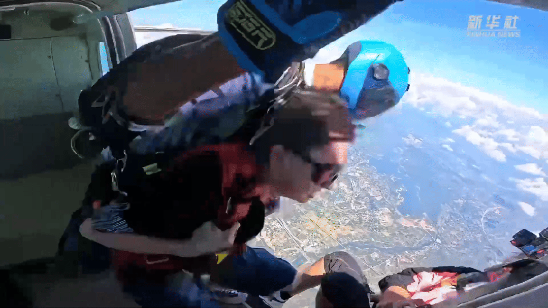 游客在三亚塔赫跳伞基地体验跳伞。图片来源:新华社客户端