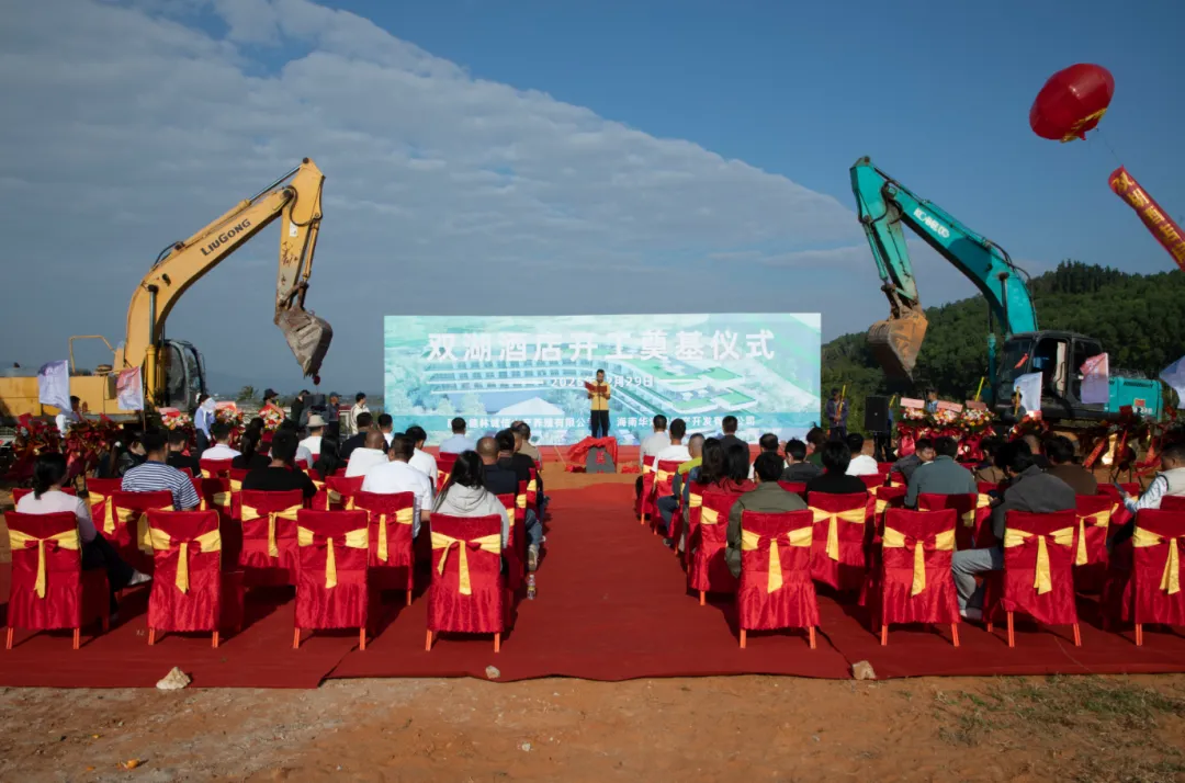 在开工仪式上,相关企业与村委会代表共同挥锹培土。双湖酒店选址位于海南环岛旅游公路大道与双湖大道交汇处南侧,毗邻海南海洋欢乐世界与陵水德林诚信水产养殖公司,有“近景区、临企业”的区位优势,叠加便利交通条件,为项目发展筑牢坚实基础。