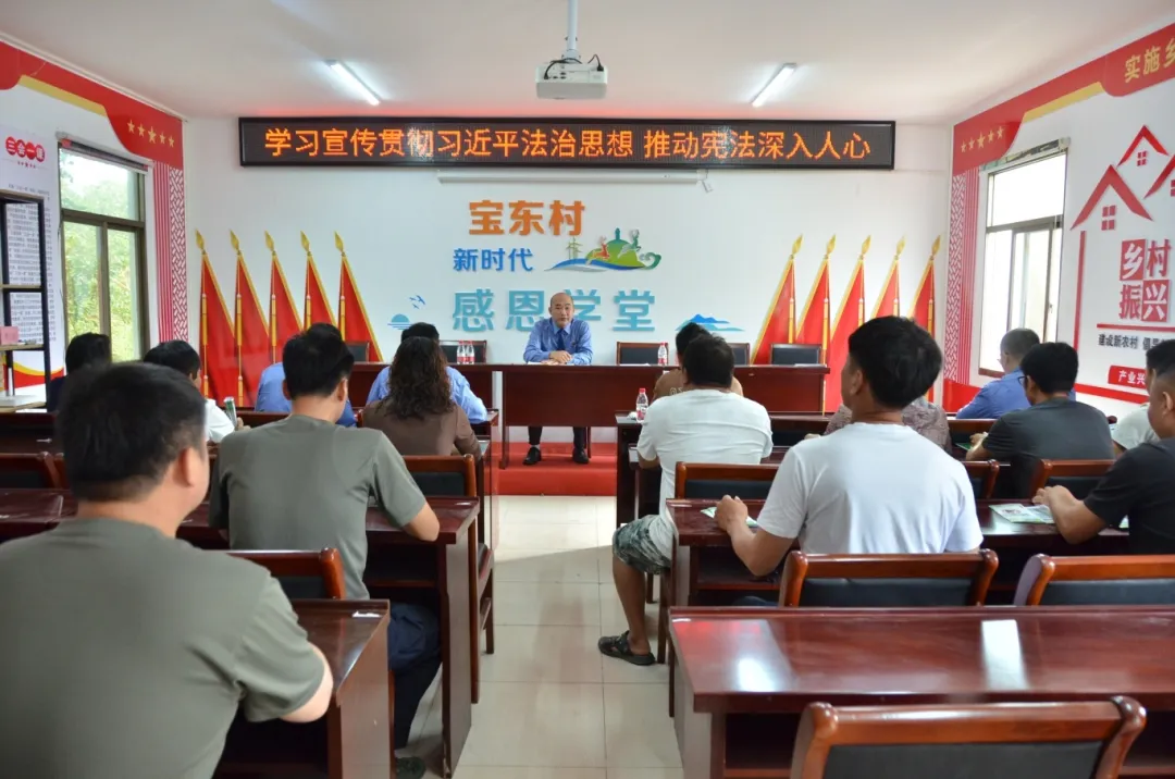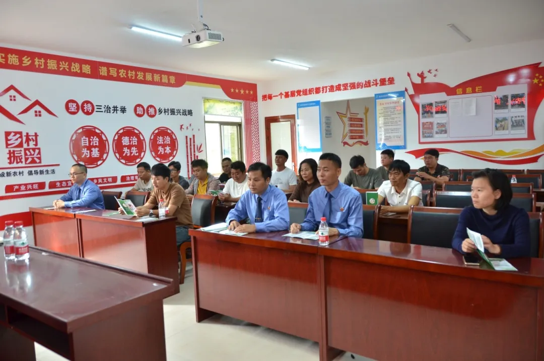 ▲宝东村干部、网格员、群众等一同参与听讲。