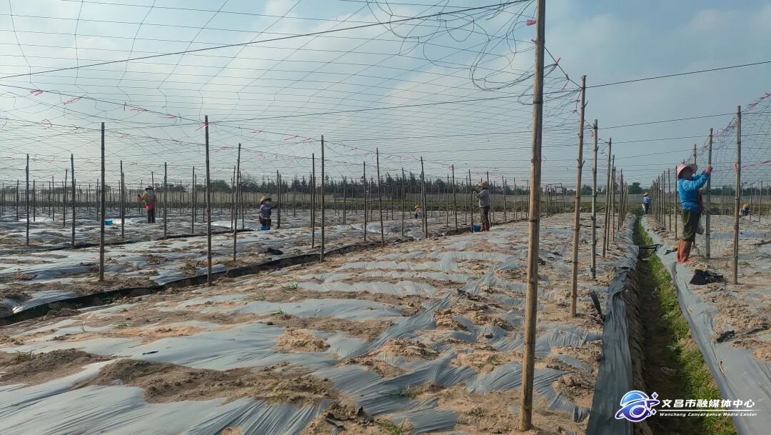 1月6日,记者走进凤兴蔬菜基地,看到田间地头一派繁忙景象,工人们正忙着为苦瓜搭建线绳网架,再过几日,培育好的苦瓜苗就将移栽定植,为来年丰产抢得先机。