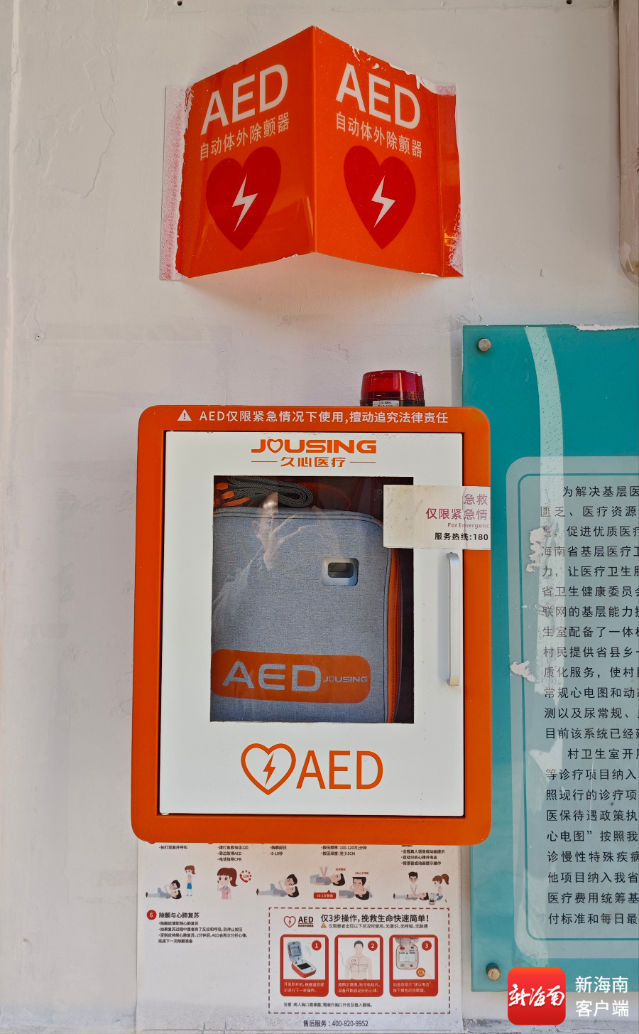 冬日暖阳初升,一大早,巷道就热闹起来,村民陆续送娃上学、赶集、工作......1月8日上午8点半,海口市秀英区永庄村卫生室“村医”陈玉辉打开卫生室的大门时,第一眼看到的是安装在大门右侧墙上崭新的体外除颤仪(AED),这是应对患者突发心脏骤停时的“救命神器”。