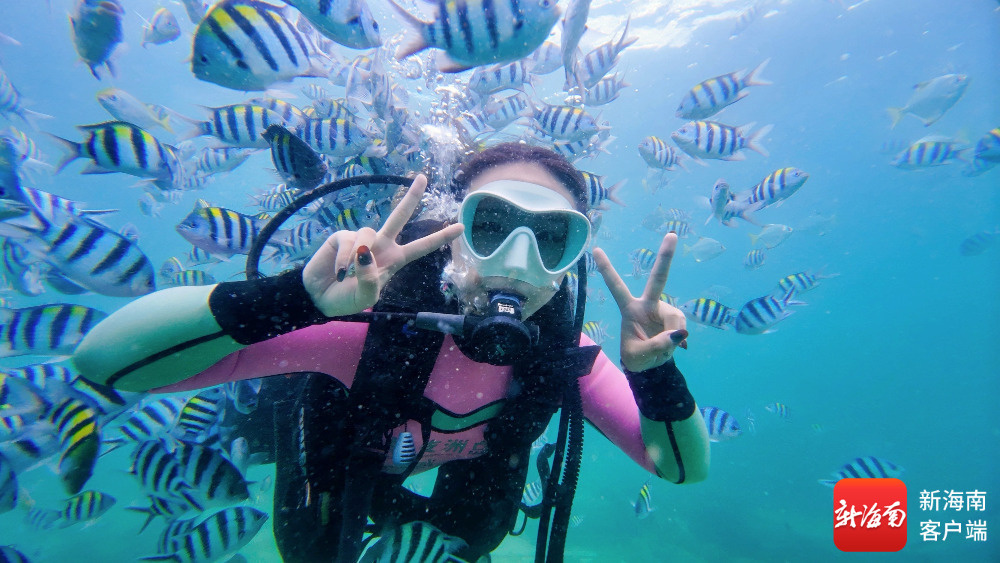 海南旅游国际推荐官在三亚蜈支洲岛旅游区体验潜水。主办方供图