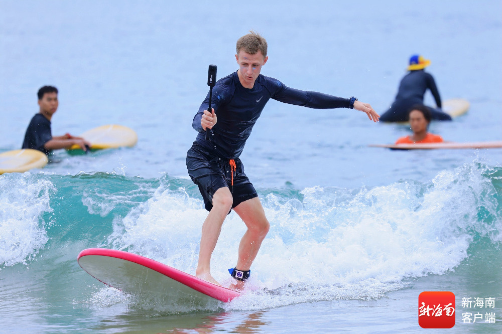 海南旅游国际推荐官在海南体验冲浪。主办方供图