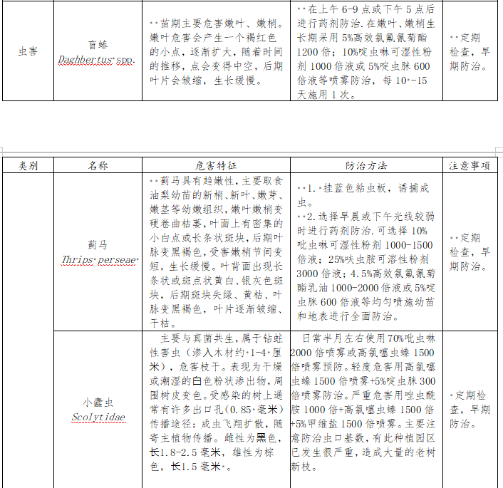 1.防治原则。贯彻“预防为主、综合防治”的方针,以农业和物理防治为基础,提倡生物防治,按照病虫害的发生规律和经济阈值,科学使用化学防治,有效控制病虫危害。