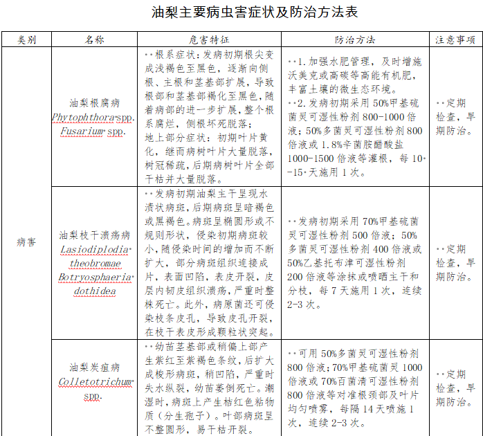 2.农业防治。严禁从疫区调入种子、种苗和接穗;选用抗病品种;加强水肥管理,增施有机肥,平衡施肥和科学灌水,增强树势,提高树体抗性。合理修剪,清洁果园,及时修剪病虫造成的枝条并集中处理,减少田间病虫侵染源。雨季及时排水。