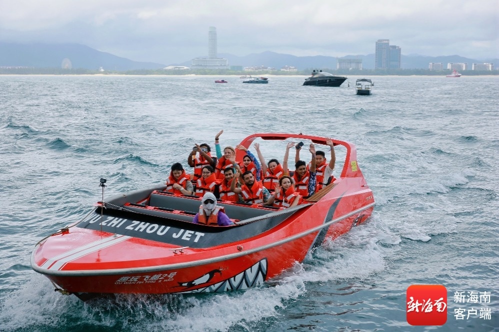 游客在三亚蜈支洲岛旅游区体验动感飞艇。三亚蜈支洲岛旅游区供图